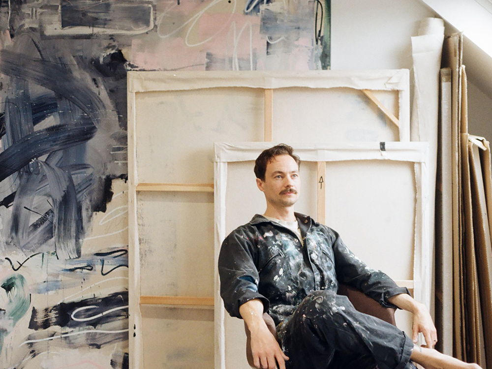 對Marcus來說,這一切都是關於繪畫的物理性以及以他所用的材料與方式、工具和表面相聯繫。 他對重新利用材料並從舊物品中重新創造新的敘述感興趣。 Marcus畫畫是為了捕捉珍貴的瞬間和動作——我想當我工作時有一個表演的元素,因為輸出是非常原始、衝動和直觀的”。