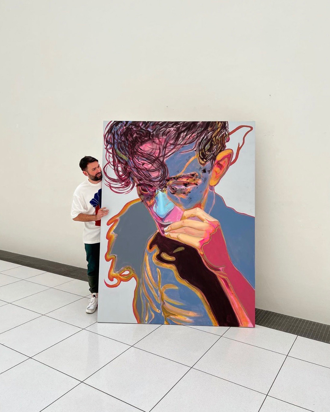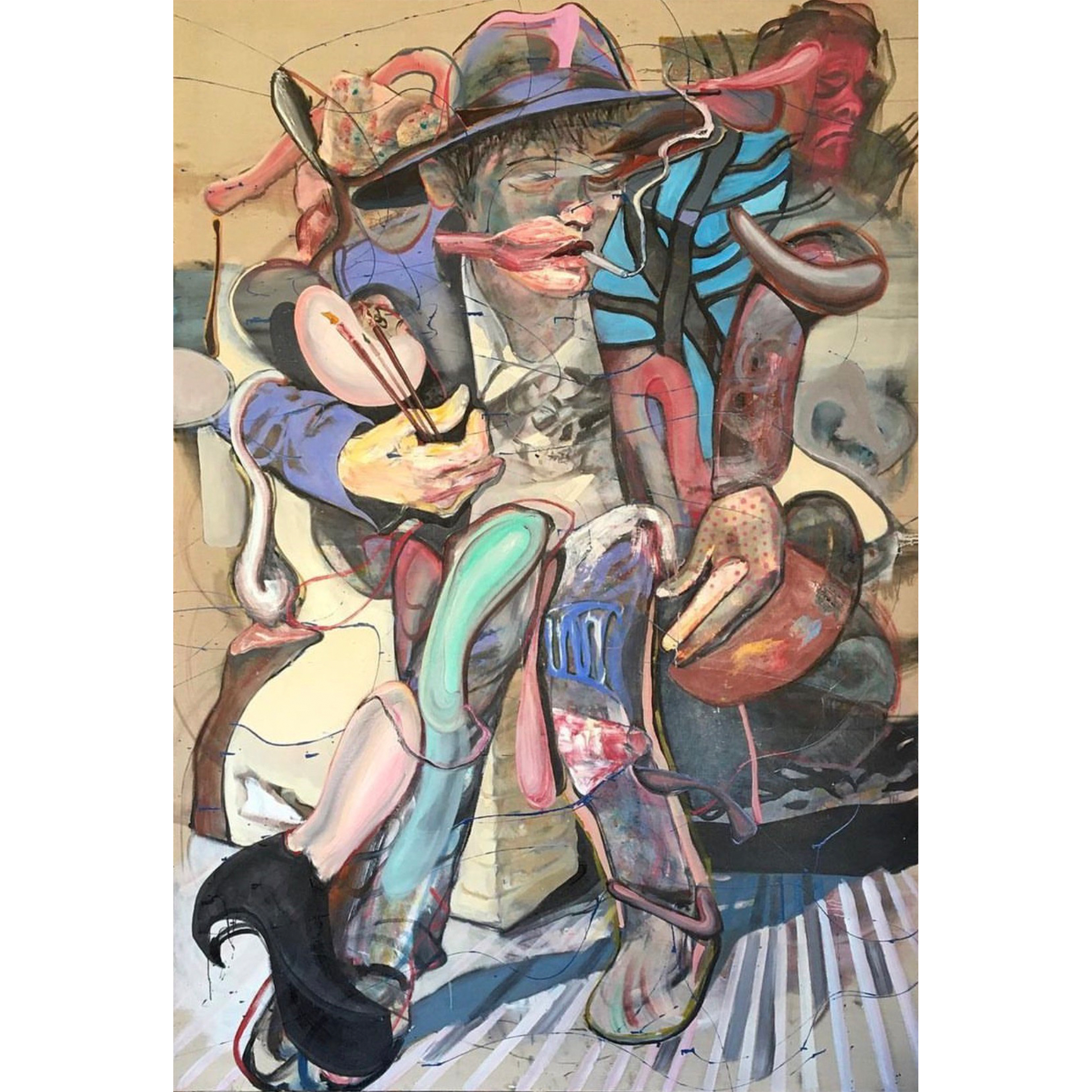 Tomas Jetela(1986年)在捷克藝術界的幾代人中是出類拔萃的,因為他是一個一貫的形象主義者。這位作者的風格可以說是富有表現力的、原始的和真實的,他通過自己的作品表達了另一個層面的情感和背景。在這個測量中起關鍵作用的術語中,有一個詞是表達。一方面,它與不斷努力以集中的方式觸及內在的一面有關,或者相反,空出他的臉,在那裡,連同對手勢的強調,他主要集中於他的繪畫注意力。另一方面,它包括一個獨特的表達方式,構成他的視覺信息的基礎。事實上,在生產特定的形式表達的過程中,基於繪畫、素描和拼貼的自由組合。他的繪畫與繪畫的線性和書本或雜誌的剪報相連,也是他目前視覺手稿的起點。他的工作方式--它允許他創造性地使用個別媒體的其他品質來幫助圖像的情感方面,表明一個意想不到的背景或影響他的構圖的重點。